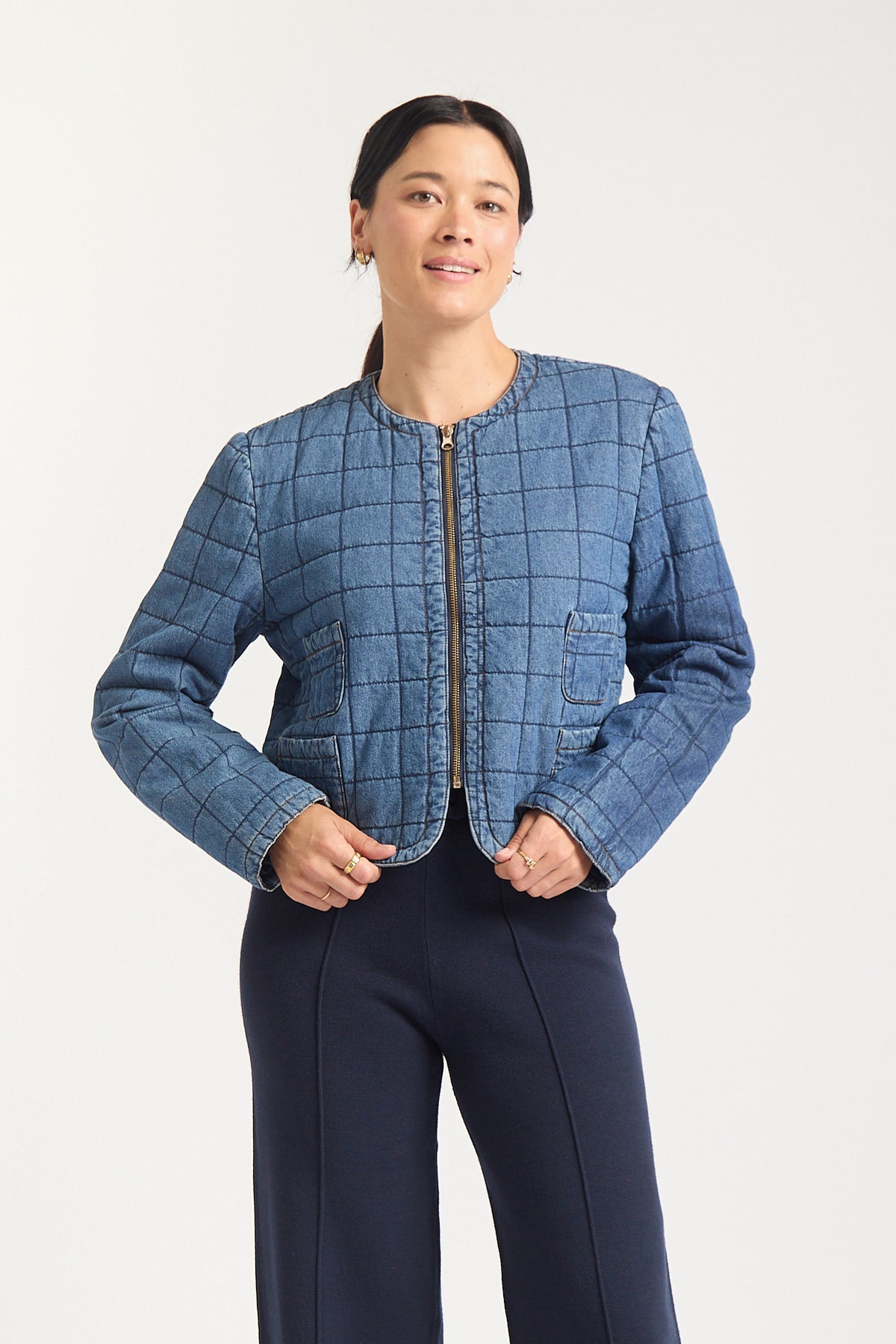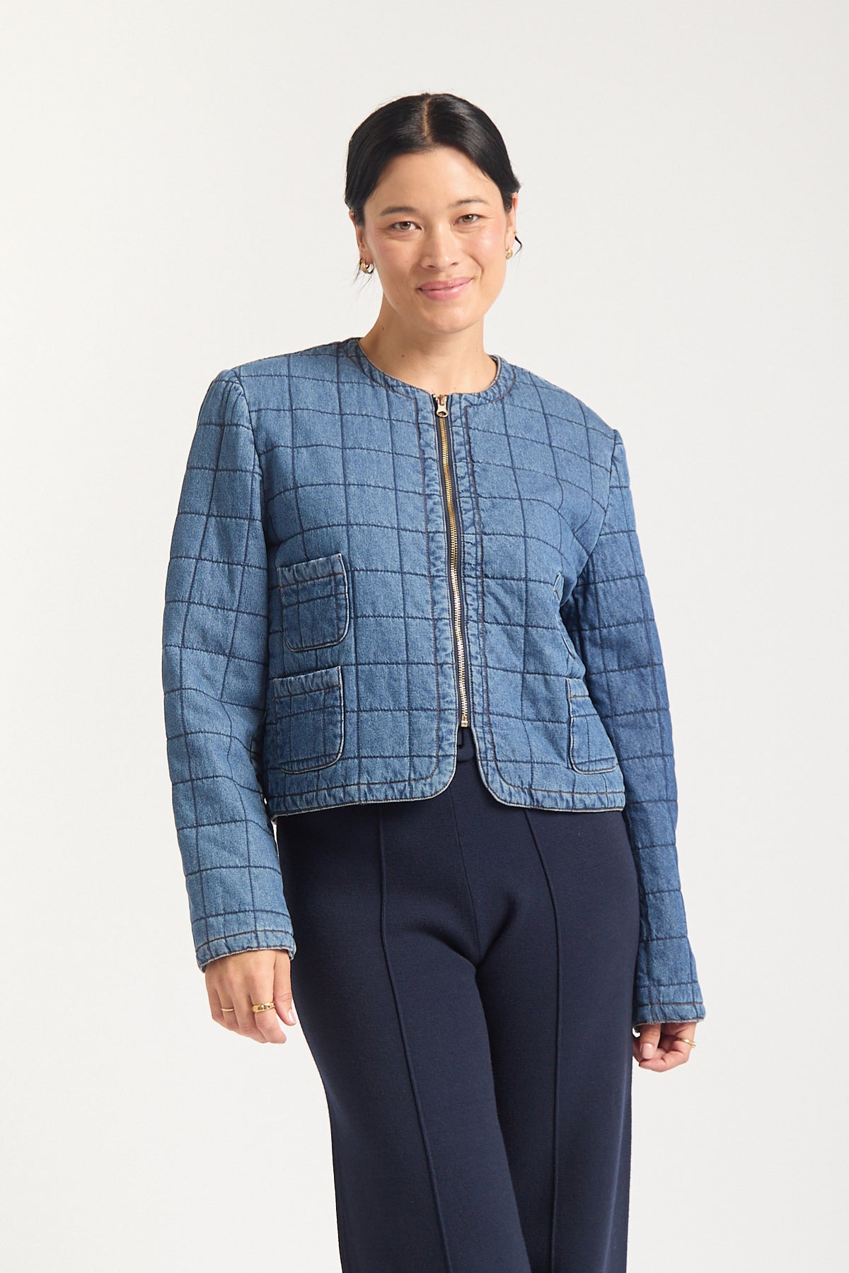 A classic quilted-style denim jacket, the new Agnes Jacket by Australian fashion label Alessandra is a must-have modern and timeless piece for your wardrobe. Featuring a front zip and pocket detail it's the perfect smart-casual piece for chilly days.