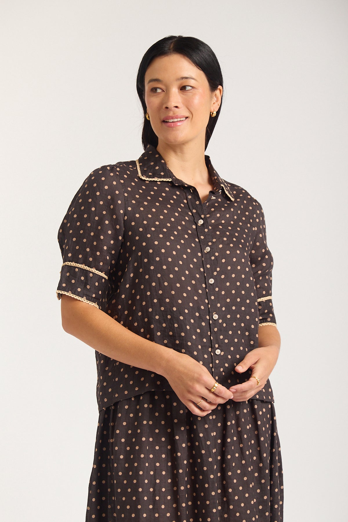 A polka-dot spot blouse by Australian fashion label Alessandra, the new Ruby Shirt is a must-have modern-classic for your new season wardrobe.