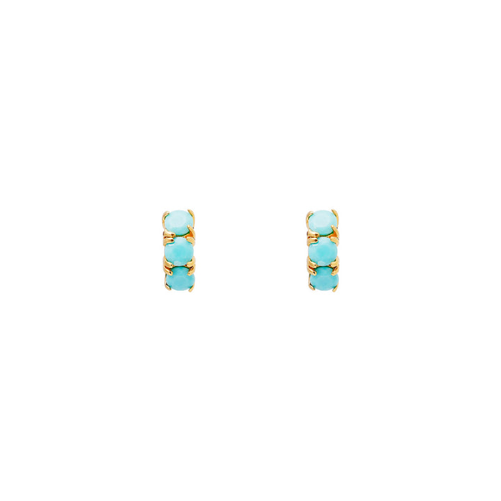 Best-selling gemstone huggies from Australian jewellery designer FAIRLEY are a must-have for your jewellery collection. These feature 3 round faceted turquoise stones that illuminate your face. The water-like qualities of the Turquoise stone also guide you to a state of calm and tranquility, which can aid in stress relief and the elimination of negative energies.