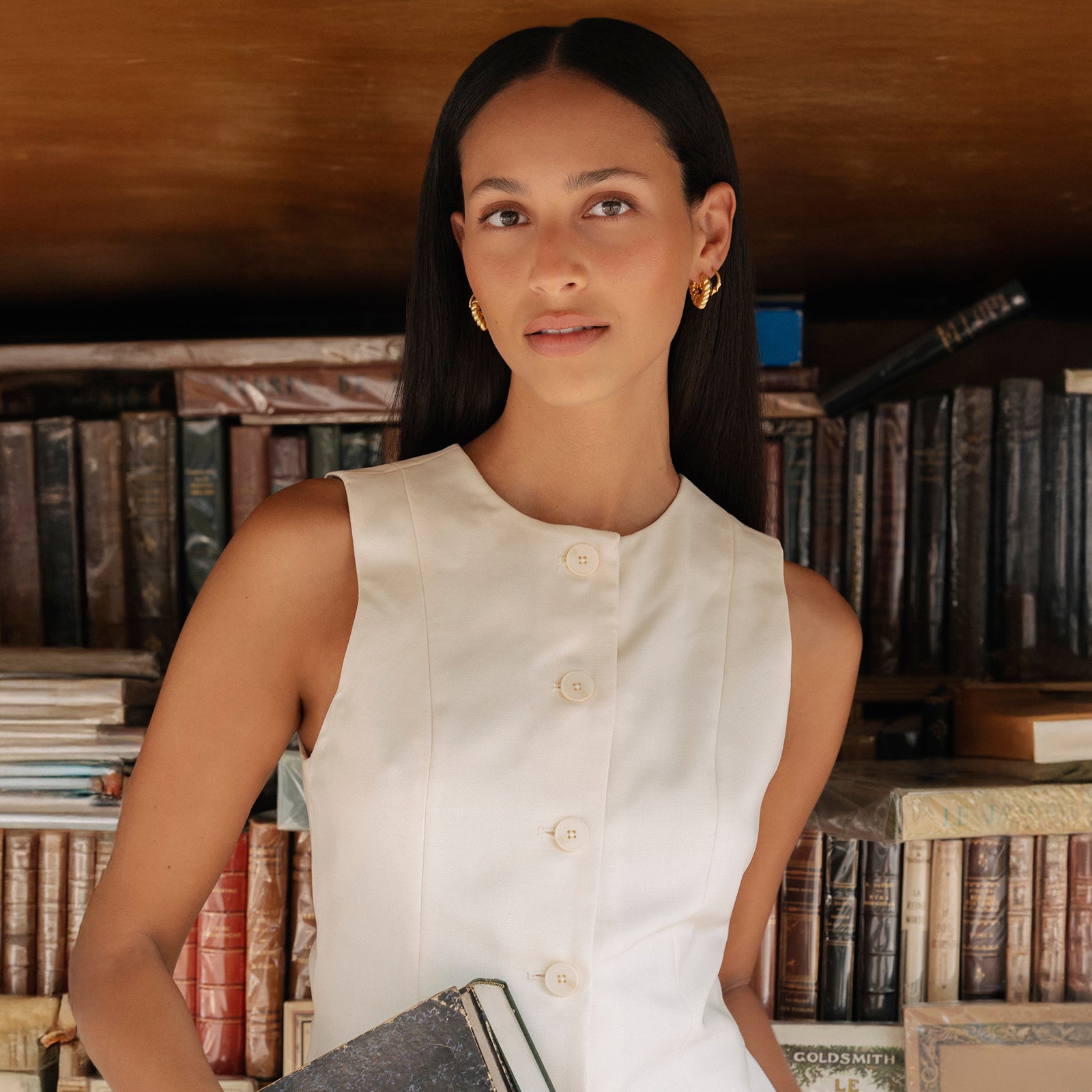 Romantic heart-shaped earrings by Fairley are a timeless must-have for your jewellery collection. A love letter to timeless romance, the Romance Hoops are crafted in polished gold and sculpted into a delicate braided heart shape. Inspired by sunlit Mediterranean escapes and vintage glamour, these hoops blend bold femininity with soft, romantic curves—perfect for daydreamers, lovers, and style sophisticates alike.