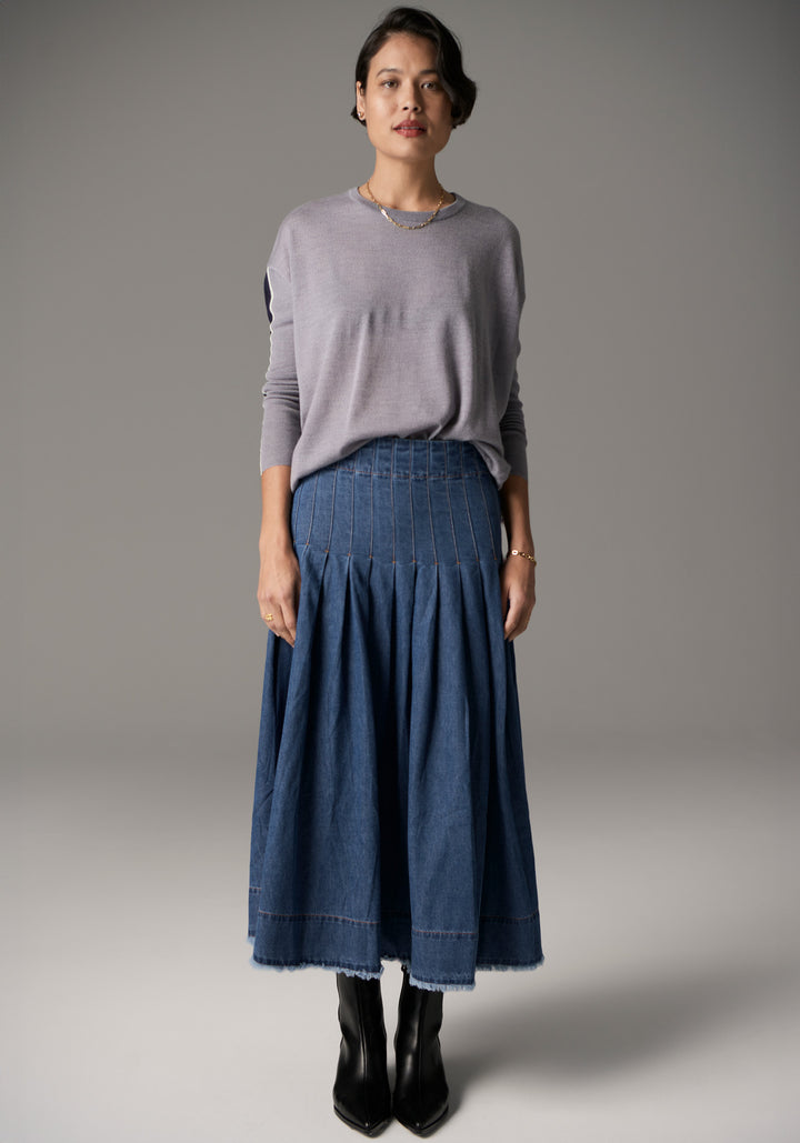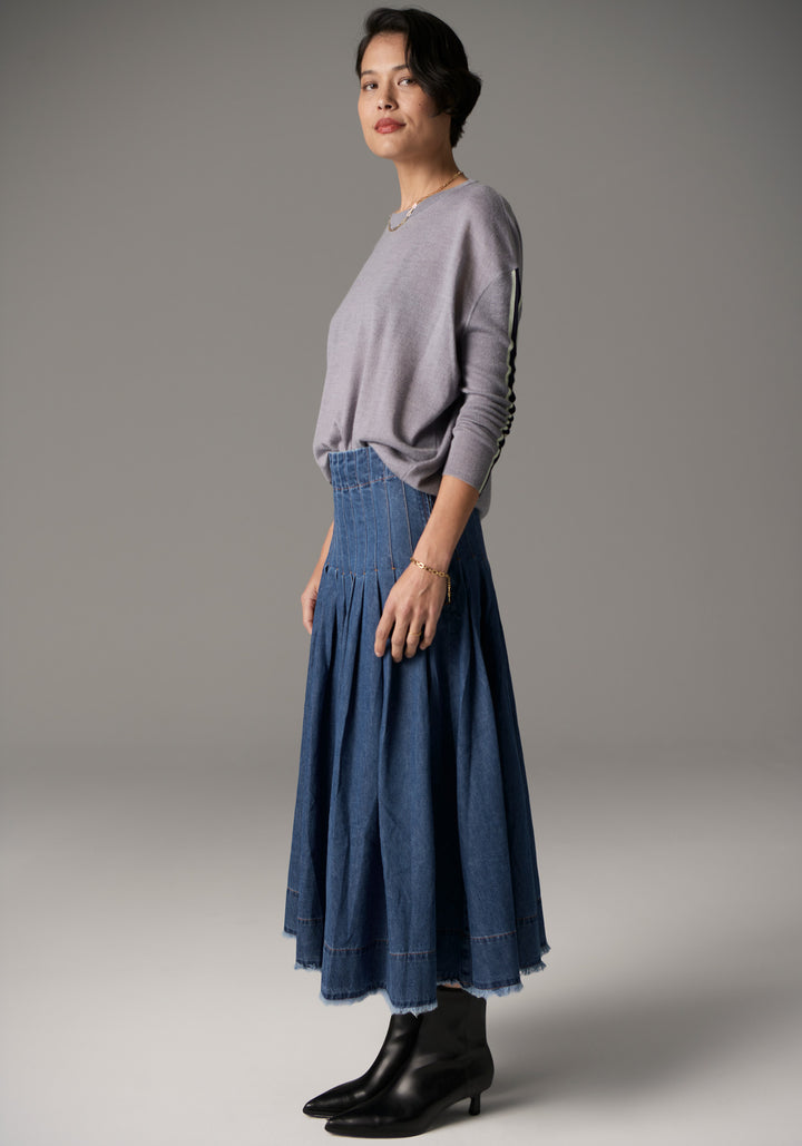 POL Clothing | Bennet Drape Back Knit | Silver / Ink / Mist