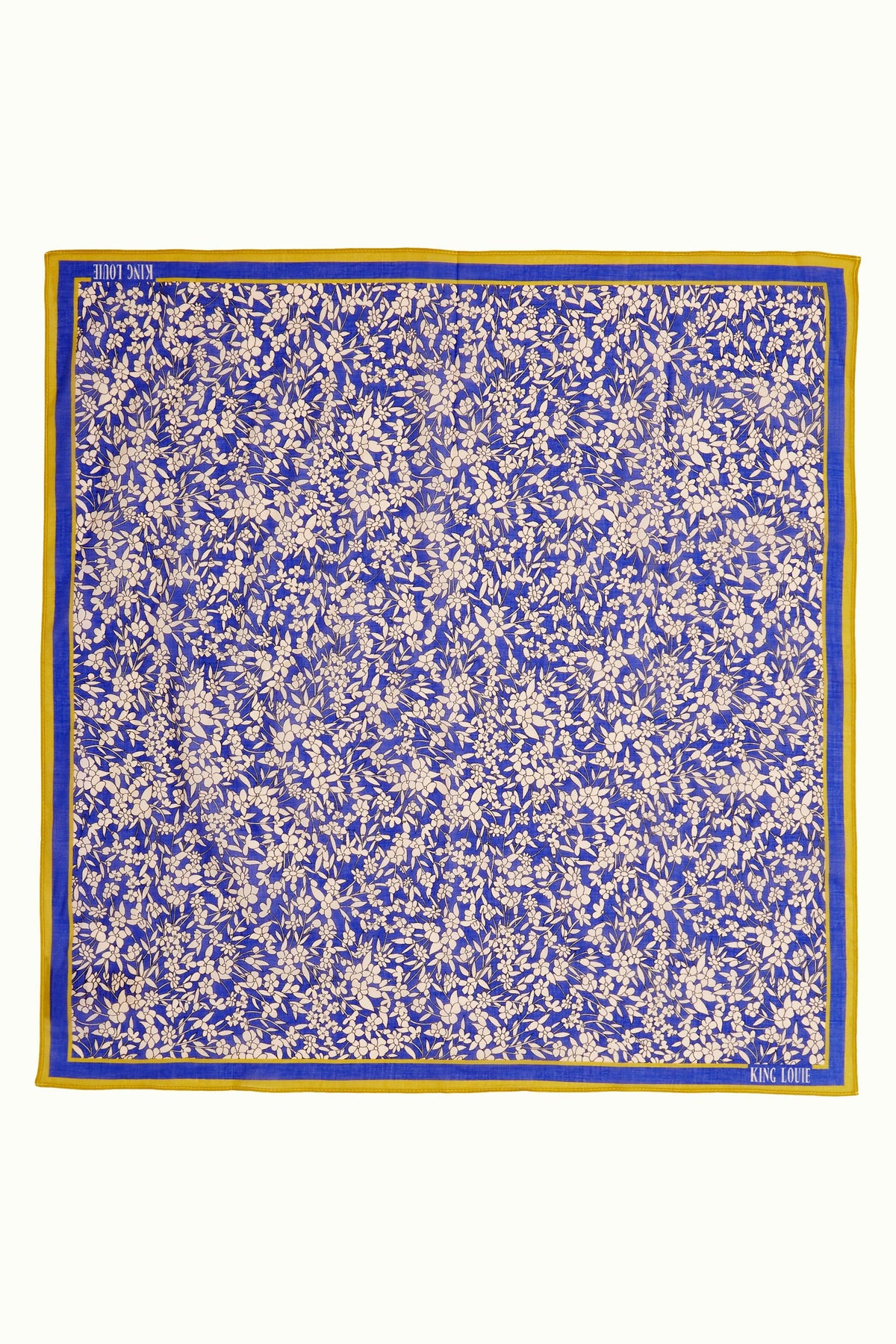 A cotton square scarf by retro-inspired fashion label King Louie is a must-have accessory for your wardrobe. Featuring a timeless and beautiful blue and white floral pattern with a mustard-yellow trim detail it's a classic and versatile piece that will be worn for years to come.
