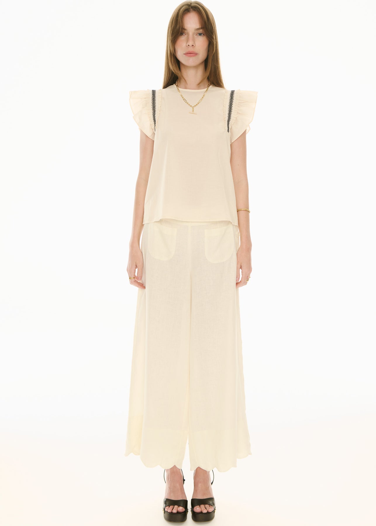 A black frill top by Australian fashion label POL Clothing is a modern classic for your wardrobe. Made from lightweight cotton voile it's the perfect top to pair with your favourite pants or skirts for a smart-casual look.