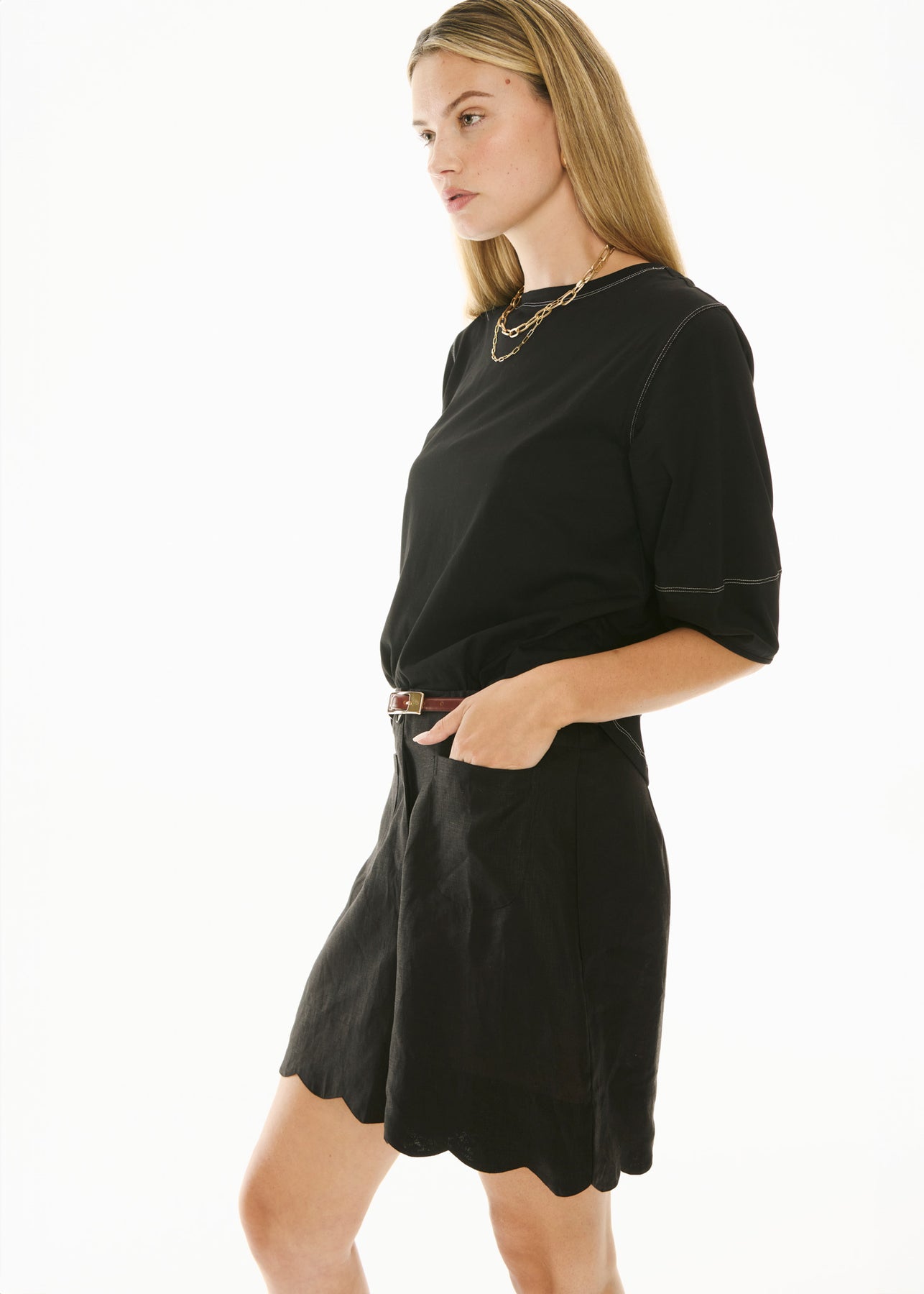 POL Clothing | Harlyn Topstitch Tee | Black