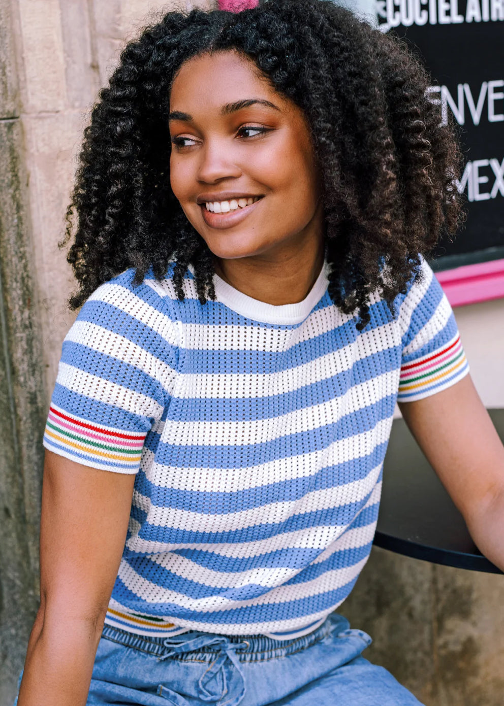 Arden Knit Top - Blue/Off-White, Rainbow Tipping